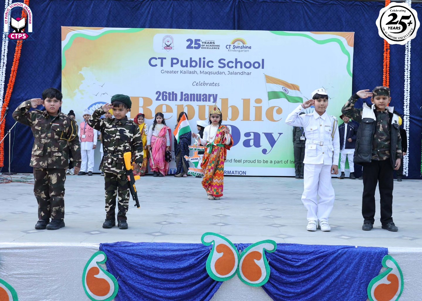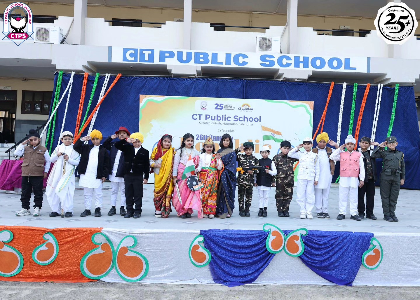 The Republic Day celebration at CT Public School began with a smart and disciplined march past by the NCC cadets, filling the campus with pride and patriotic spirit. This was followed by the hoisting of the National Flag and the singing of the National Anthem.