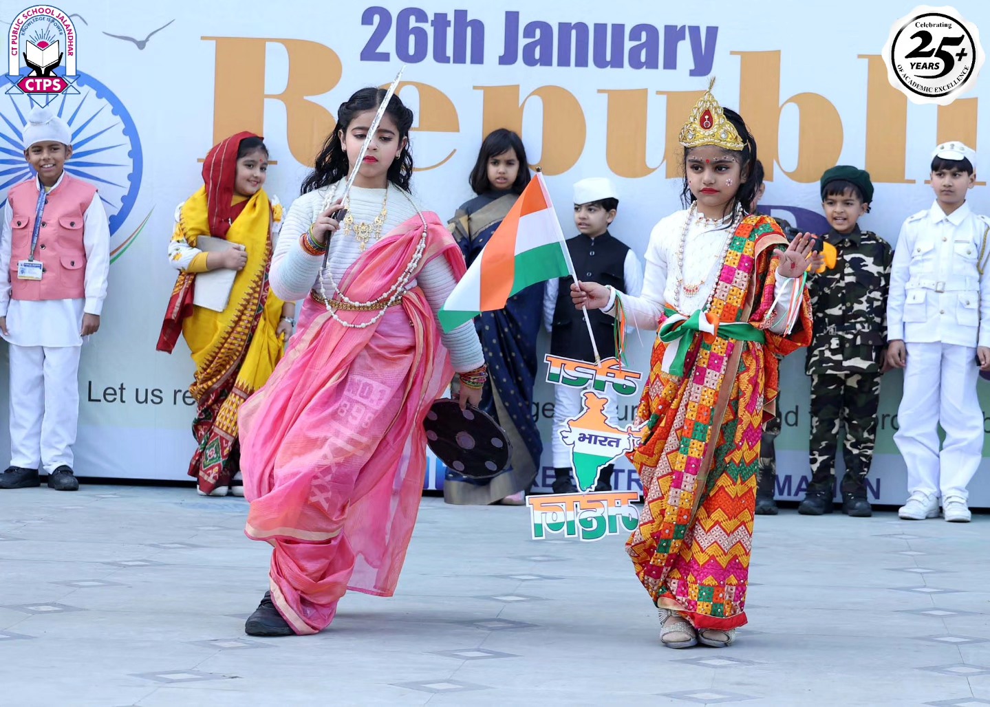 The Republic Day celebration at CT Public School began with a smart and disciplined march past by the NCC cadets, filling the campus with pride and patriotic spirit. This was followed by the hoisting of the National Flag and the singing of the National Anthem.
