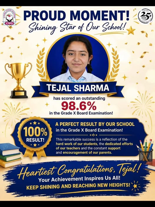 Tejal Sharma makes us proud with an outstanding 98.6% in Grade X Boards.